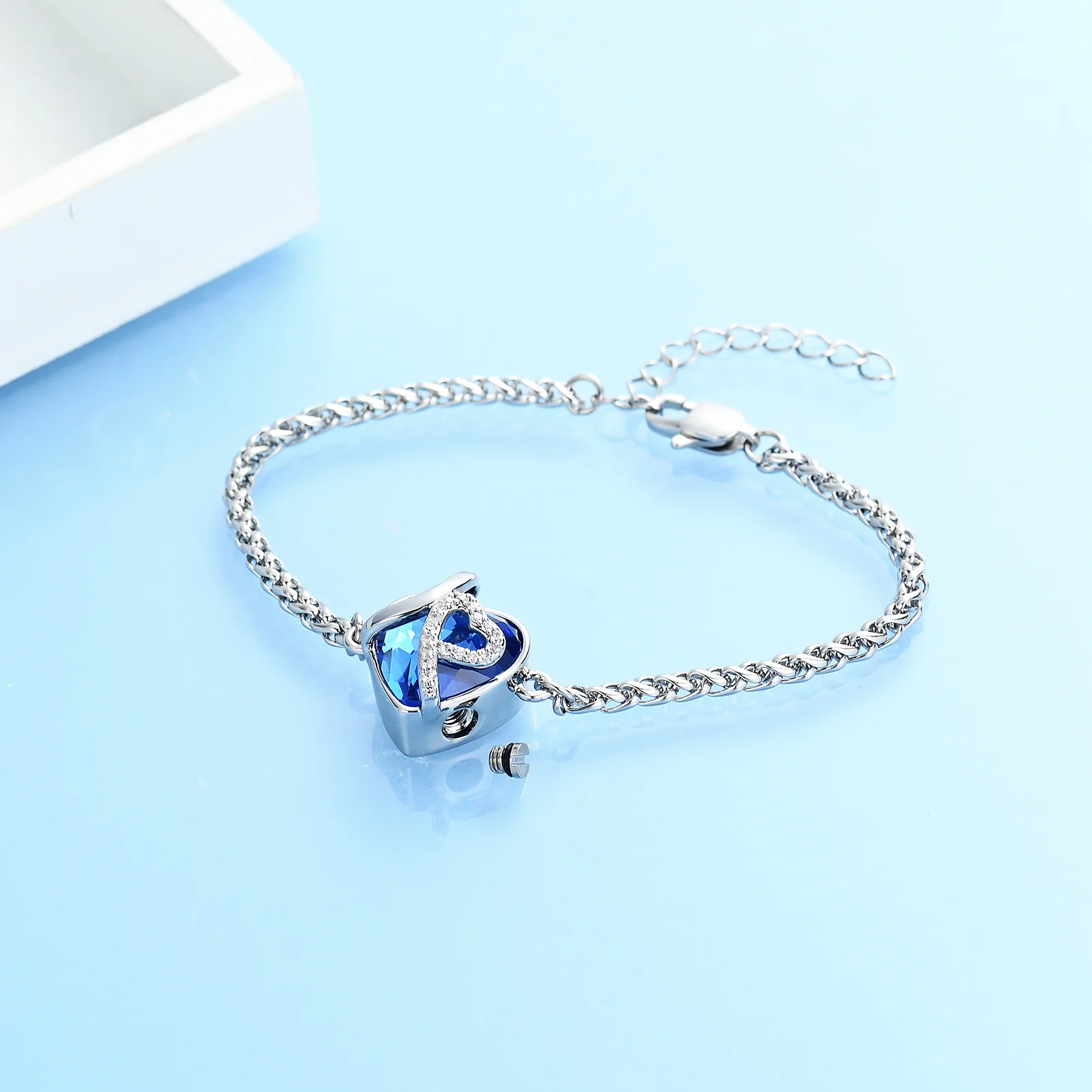 Honor the memory of your loved one with the elegant Crystal Heart Urn Bracelet. This beautiful cremation jewelry piece is designed with a sparkling crystal heart centerpiece, symbolizing eternal love and remembrance. Crafted from high-quality stainless steel, this urn bracelet is both durable and stylish, making it perfect for daily wear. The adjustable design ensures a comfortable fit for most wrist sizes, while the radiant crystal heart adds a touch of elegance and comfort during difficult times. Whether as a personal keepsake or a thoughtful sympathy gift, this bracelet offers a meaningful way to cherish memories forever.