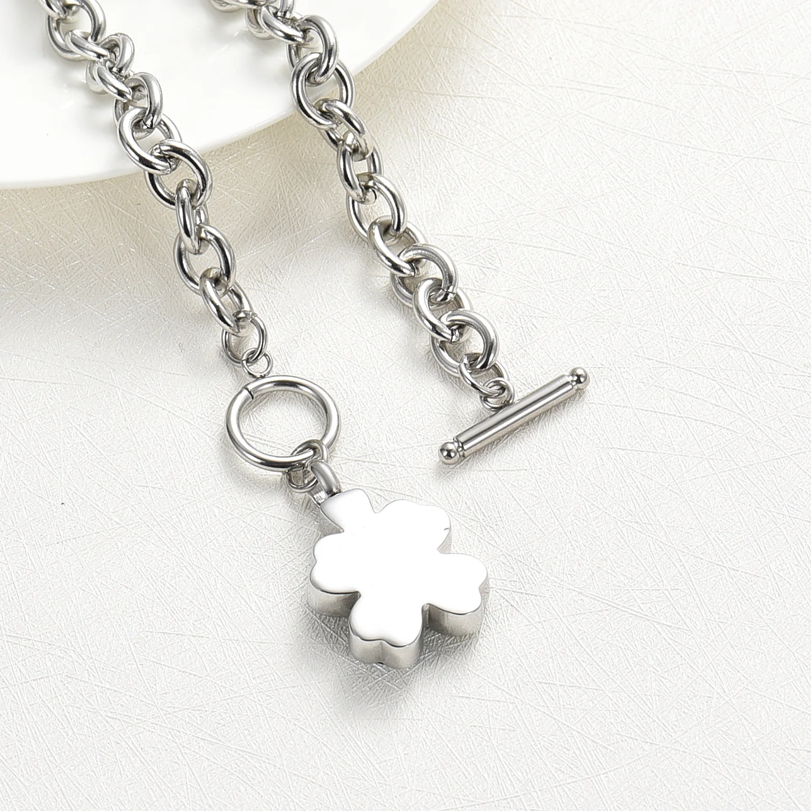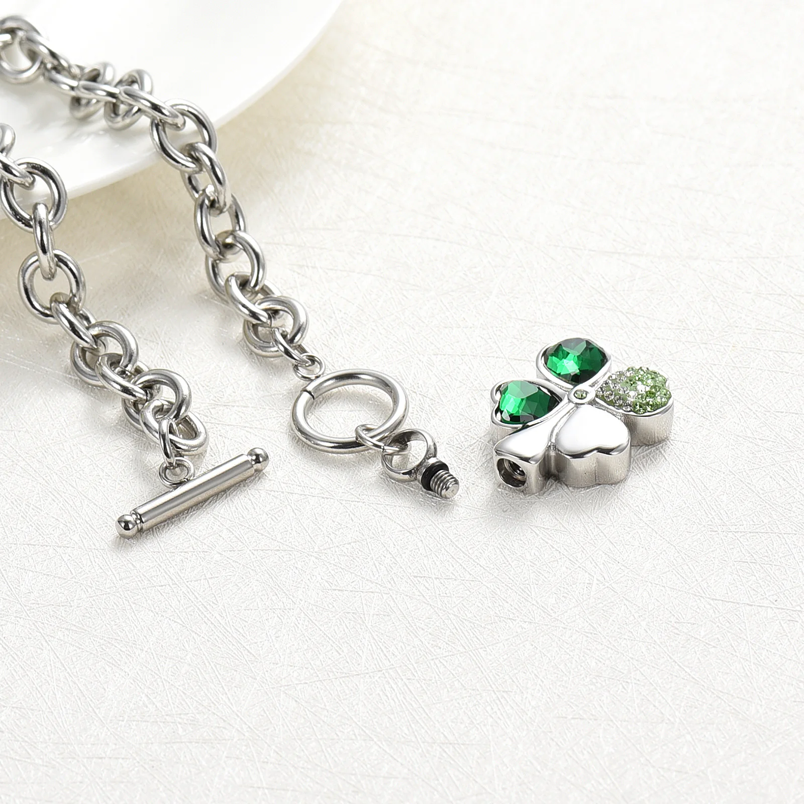 Celebrate luck, love, and cherished memories with this Clover Shaped Urn Bracelet, a beautiful piece of memorial jewelry designed for women. Featuring a delicate four-leaf clover charm, this bracelet discreetly holds a small portion of ashes, hair, or dried flowers, keeping your loved one close at all times. Made with high-quality stainless steel, it combines durability with elegance, offering both style and heartfelt remembrance. Perfect as a sympathy gift or a personal keepsake, this cremation bracelet is a timeless way to honor and remember someone special.