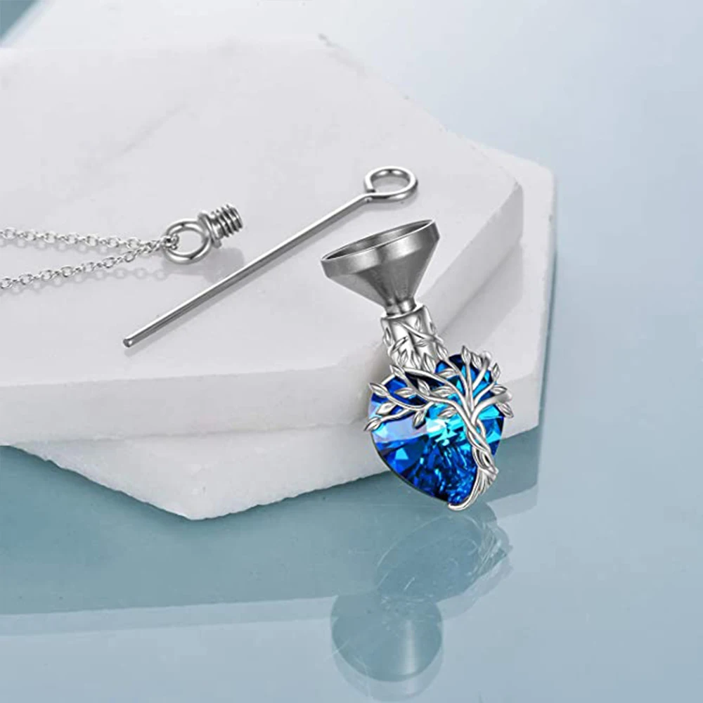 Starlight Urns Tree of Life with Blue Crystal Urn Necklace for Ashes – Memorial Keepsake Pendant